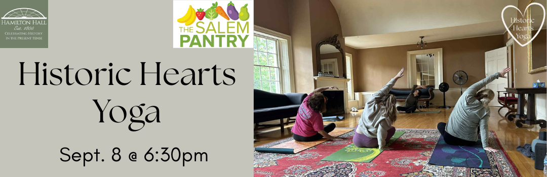 Rebecca was inspired to offer this class to support local organizations that both celebrate stories of the past and embrace the people living here now. Are Hamilton Hall and/or the Salem Pantry dear to your heart? Do you love yoga? We'd love to have you join us for this special event.