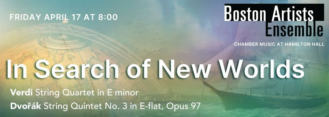 Written twenty years apart, the sole string quartet of Giuseppe Verdi (1813-1901), and the third string quintet (a “viola quintet” for two violins, two violas, and cello, vs. his two earlier ones, each of them for two violins, viola, cello, and double bass) of Antonín Dvořák (1841-1904), represent “new worlds” for each of them, in several different ways. Verdi’s string quartet was a time-filling “one-off” for him, written when rehearsals for an 1873 Naples production of his opera Aida were postponed. Far from his native Bohemia, Dvořák composed his Opus 97 string quintet in 1893, in the small Czech community of Spillville, Iowa, while summering there during his time teaching at the National Conservatory of Music in New York. Besides their geographical points of origin, these two works also offer striking contrasts between Verdi’s and Dvořák worlds-apart musical voices.